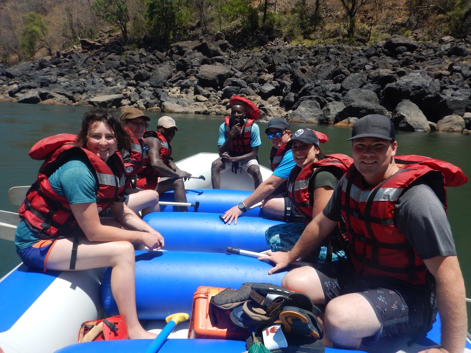 The river had big thrills but also some chill time where we could check out the beauty of the Zambezi River Gorge. It was so quiet and beautiful to be floating down the magnificent river! We even had a few chances to go for a swim, drifting with the current through the gorge. After one of these swims, our guide informed us that there are crocodiles living in the river! "They are vegetarians," he assured us. Realistically, the only crocodiles in the gorge are ones that have been swept over the falls and tumbled down the rapids. They tend to be quite small as the large ones would not survive that type of impact. They don't pose a threat to people, but it made us think twice about lingering in the water, especially after we saw one sunning itself on the shore.