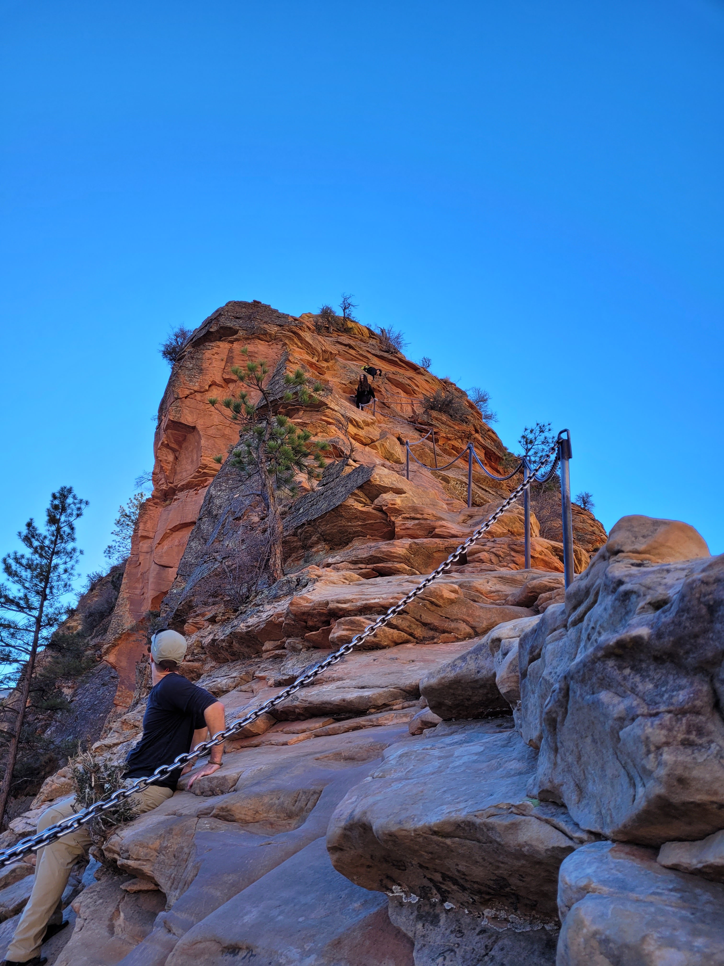 Scouts Lookout is junction between the West Rim Trail and Angel's Landing. Lots of people stop here as the trail gets very narrow and exposed. From here, there is still lots of climbing to do, with chains to protect the narrow and steep sections. When it gets busy, people end up waiting in line to climb to the summit and then get back down. There isn't much room to pass on the trail so the earlier you can start the better.