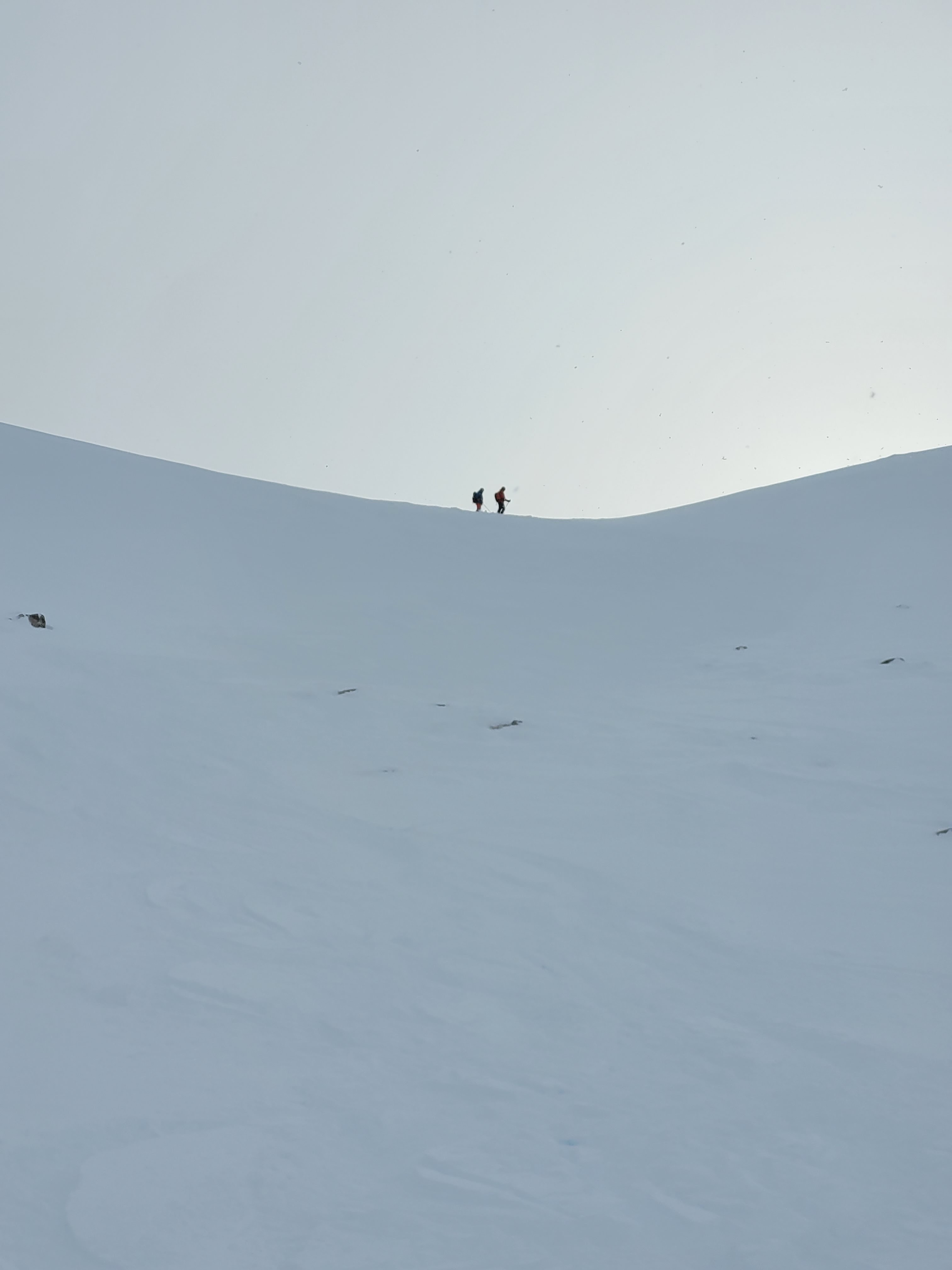 We contoured up the gradual moraines below Little Sifton as the clouds started to roll back in and the light turned flat. As we arrived at the top of the col, we had lost our visibility and made a decision to skip the final push to the top of Little Sifton, choosing instead to transition and drop in from the col.